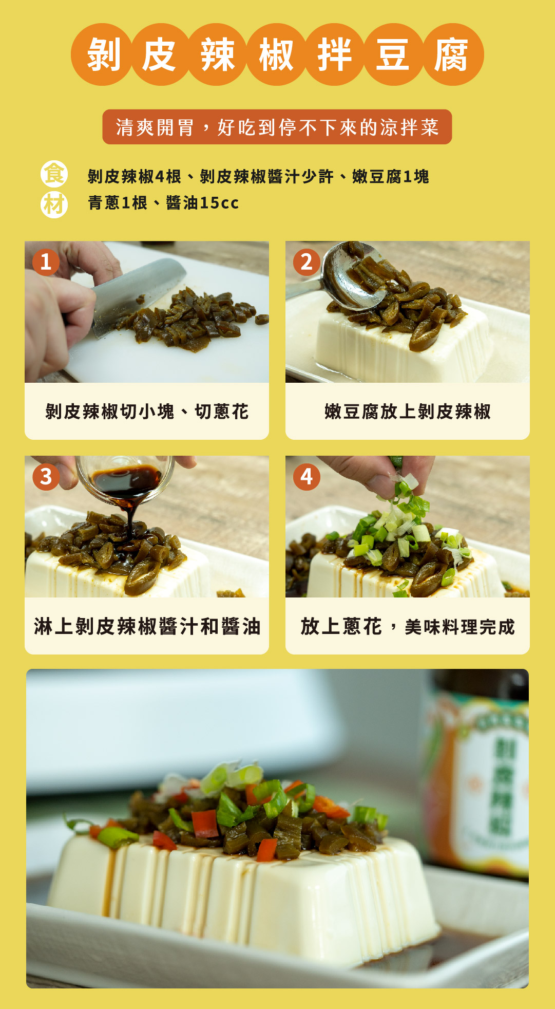 中辣:醬汁+7~10根剝皮辣椒