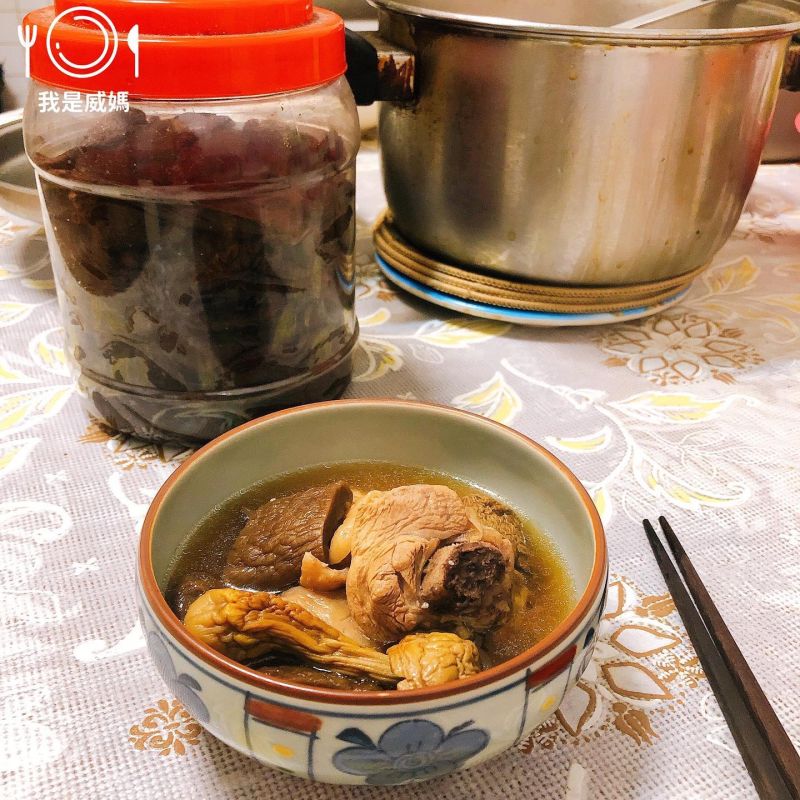 今年5月天氣較涼,再加上本土疫情嚴峻,許多婆媽為了要給家人補身體,不辭辛勞也要燉煮一鍋美味養生的雞湯;不過你燉煮雞湯還只會加乾香菇、剝皮辣椒嗎?對此,臉書粉專《威媽的吃貨日常》就分享了煮雞湯加「稀有神物」超級鮮甜好喝,原來是「老菜脯巴西蘑菇雞湯」,並表示「阿嬤說這桶至少20年以上」。